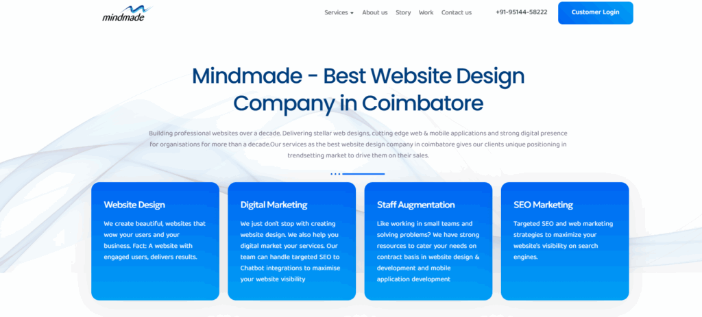 Mindmade is a leading name in Coimbatore’s digital space, offering professional web design and branding services. They design websites that align with the brand’s message and business goals. Their portfolio encompasses projects across various sectors, including education, real estate, healthcare, and more.